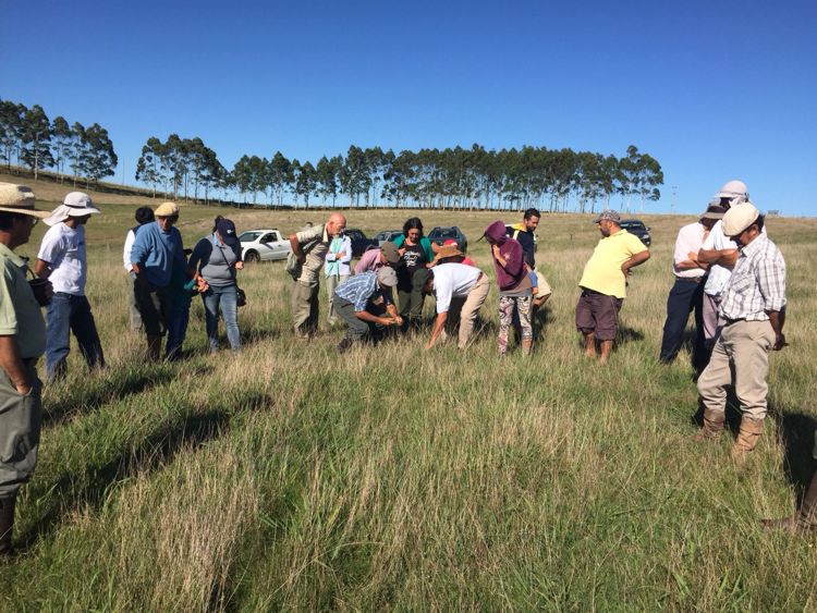 Algunos de los aspectos que se comentaron son: en el último año el negocio más importante fue la recría de terneros enteros para la exportación. Tiene una filosofía de producción que apunta a simplificar manejos y bajar costos mediante mejoramientos de campo natural y manejo rotativo intensivo del ganado (hasta ahora vacunos). Vimos un Maku muy bueno que se aprecia en las imágenes con 13 años de antigüedad, subdividido en 10 potreros. El año pasado produjo 300 kg/ha de carne en primavera. Luego de dos años fertilizado con 300 kg/ha de fosforita este año no le toca refertilización (para bajar costos). Otras pasturas intensivas son las promociones de raigrás que se usan principalmente para la cabaña de vacunos. Se deja semillar y acumular bastante material en diciembre y enero para generar materia orgánica.